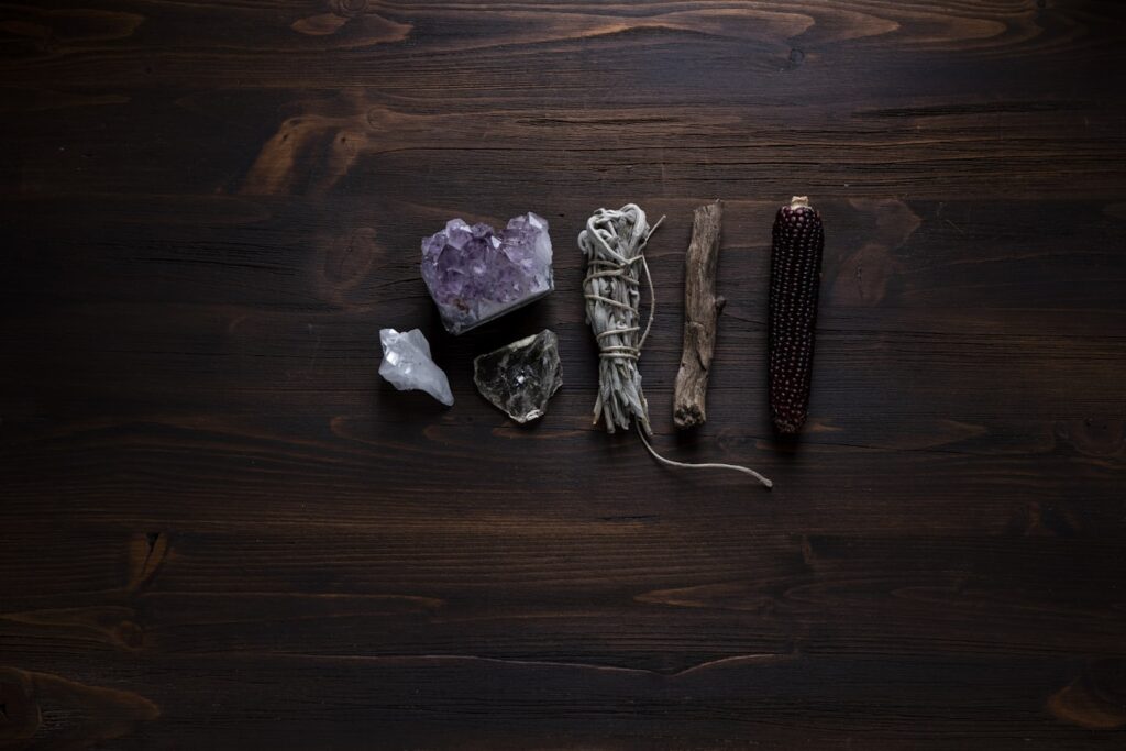 Many practitioners develop their connection with nature through herbalism, learning which plants grow in each season and how to use them. You might create herbal remedies for common ailments or incorporate herbs and crystals into your spiritual work. Grounding practices help you feel more connected to the earth beneath your feet.